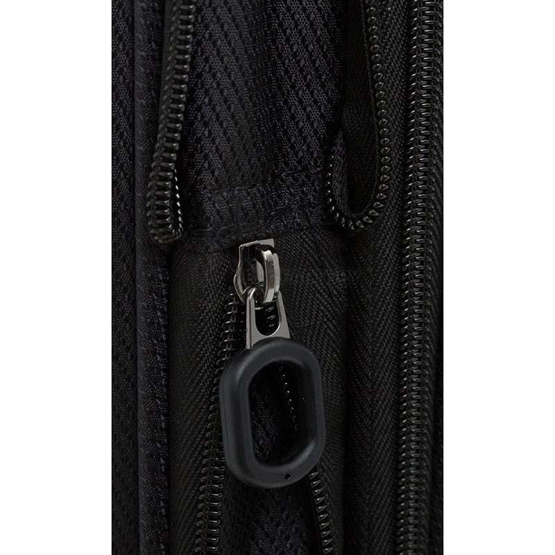 Аксессуар закрывается на молнию, также для безопасности оснащен кодовым замком с системой TSA. Внутри чемодана два отделения, одно оснащено прижимными ремнями, второе - текстильной крышкой на молнии.