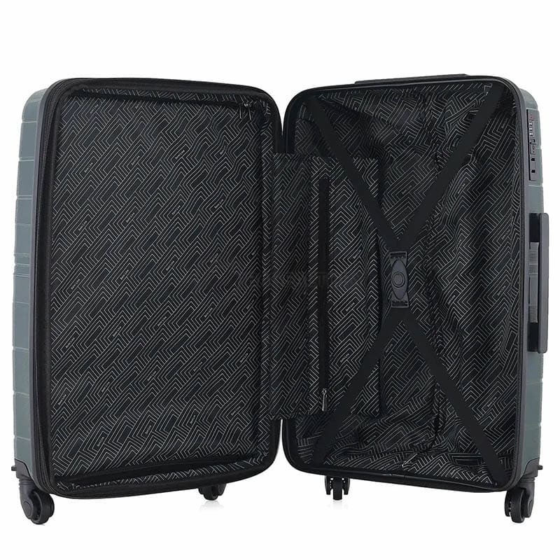 Чемодан имеет текстильную перегородку на молнии, которая разделяет внутреннее пространство на два основных отделения.