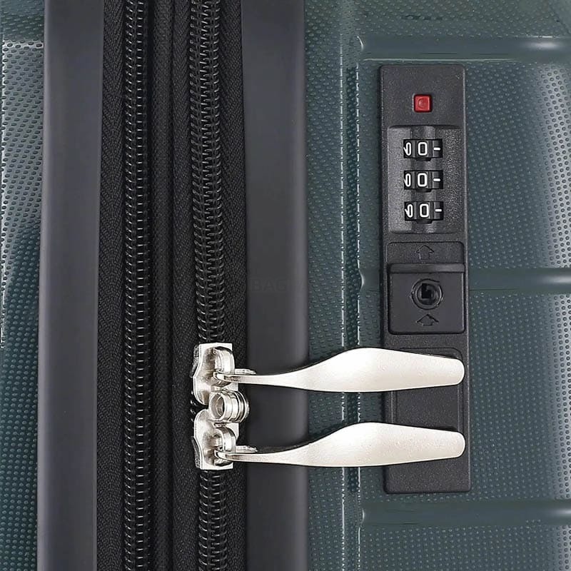 Кодовый замок – чемодан оснащен "утопленным" кодовым замком, находящимся в одной плоскости с корпусом, и не выступающим наружу. Замок не позволяет открыть чемодан ключом или другим металлическим предметом снаружи. Замок можно открыть только зная трехзначный код.