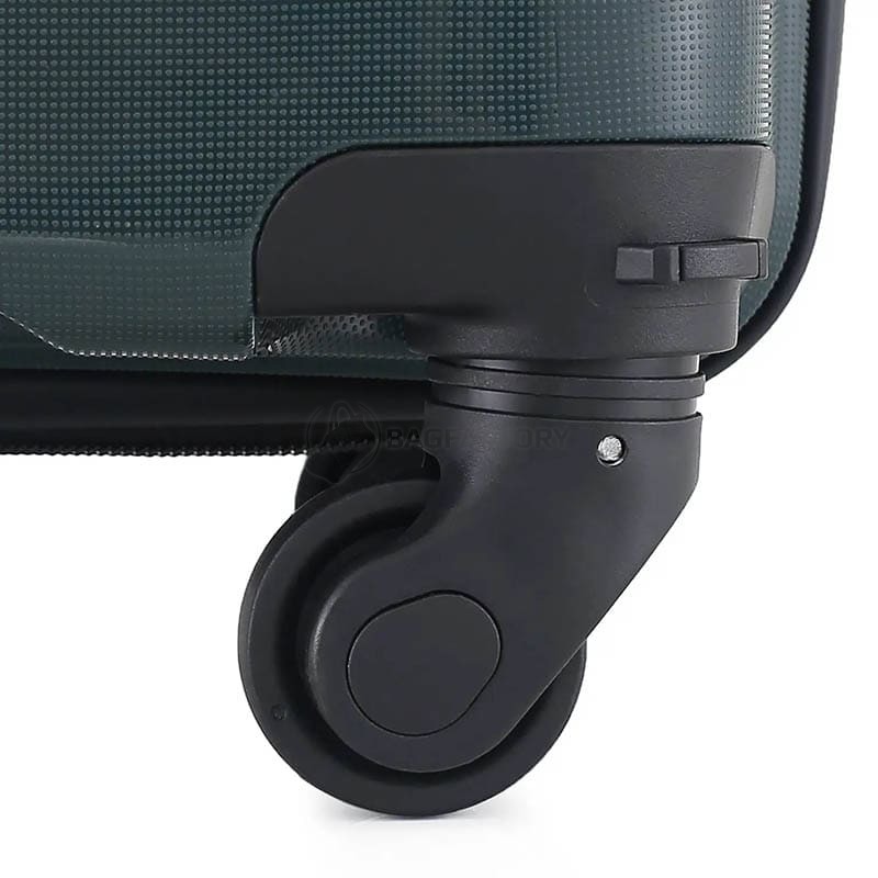 Съемные колеса – чемодан имеет съемные колеса, что позволяет уберечь их от поломки третьими лицами в багажных отделениях и при передвижении багажными лентами в аэропортах. Также, благодаря съемным колесам, чемоданы одной модели разных размеров можно компактно хранить друг в друге. Для того чтобы подсоединить или отсоединить колеса от чемодана – достаточно нажать на кнопки, расположенные по периметру дна чемодана. Весь процесс занимает несколько секунд. Колеса вращаются на 360° и обеспечивают необходимую маневренность чемодану. Пластиковые пазы, куда вставляются колеса, крепятся на 4 винта изнутри, что обеспечивает высокую стойкость при ударной нагрузке с любой стороны, и позволяет их заменить при износе.