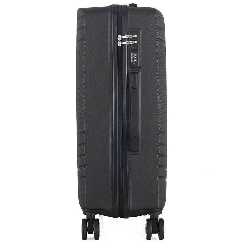 Чемодан Semi Line DAS302975 имеет рельефные линии, пересекающие корпус с более мелким рифленым профилем под разными углами. Благодаря этому любые поверхностные повреждения корпуса при использовании чемодана будут незаметны. Он оснащен легкой алюминиевой телескопической ручкой, которая фиксируется в двух положениях, а ручка для переноски чемодана имеет мягкую гелевую подкладку. "Утопленный" кодовый замок призван защитить содержимое вашего чемодана, а также не выступает над корпусом, так что его невозможно случайно повредить при транспортировке чемодана.