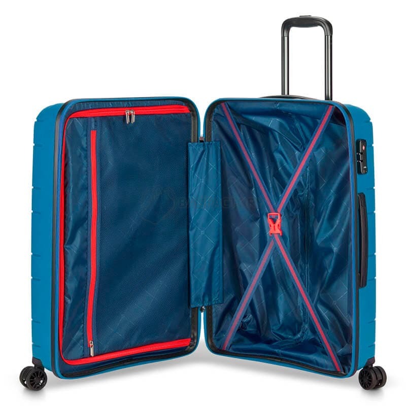Средний чемодан изготовлен из прочного 100% полипропилена, имеет отличную внутреннюю организацию, подходит для длительных поездок. Оснащен 4 спаренными, бесшумными и маневренными колесами. Для удобства перемещения предусмотрены эластичные, подъемные пластиковые ручки на верхней и боковой панелях и телескопическая ручка. Также, присутствуют боковые ножки для горизонтального положения чемодана. Безопасность и сохранность багажа обеспечивает встроенный кодовый замок с системой TSA. Чемодан закрывается на молнию и имеет отличную внутреннюю организацию.