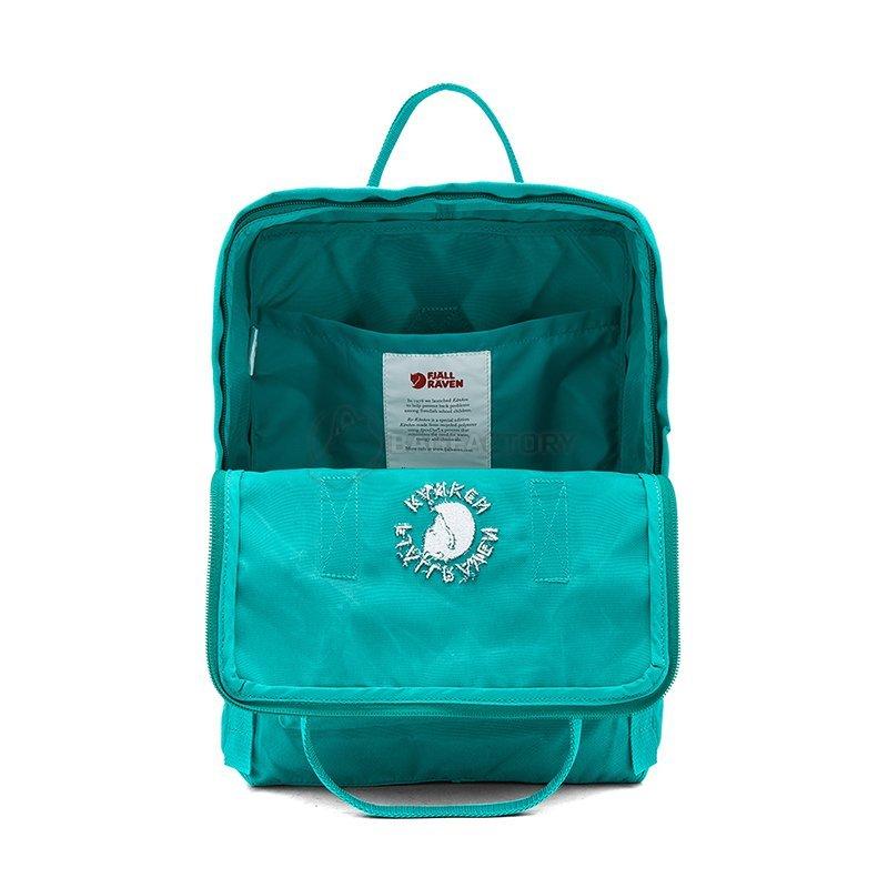 Fjallraven Re-Kanken - специальная модель рюкзака Kanken, сделанная полностью из полиэфира, переработанного из одиннадцати пластиковых бутылок. Технология окрашивания SpinDye, которая радикально уменьшает использование количества воды, энергии и химических веществ. Ежедневный компаньон с тем же гениальным дизайном, что и оригинал, но теперь заново изобретенный с точки зрения рециркуляции / переработки, что экономит природные ресурсы.