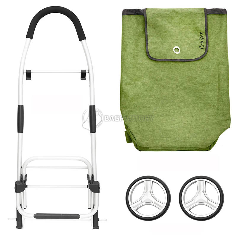 Сумка-тележка Foldable обладает всеми достоинствами тележек торговой марки ShoppingCruiser® - легкостью, прочностью, устойчивостью, компактностью. Данная модель имеет пару ультралёгких колес на подшипниках, свободно преодолевает неровности местности, бордюры и ступеньки.
