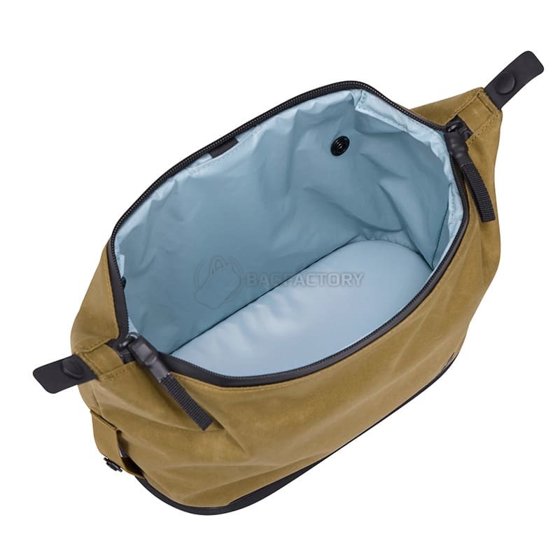 Расширьте боковые клапаны, чтобы вместить больше предметов, или застегните их для более компактной сумки