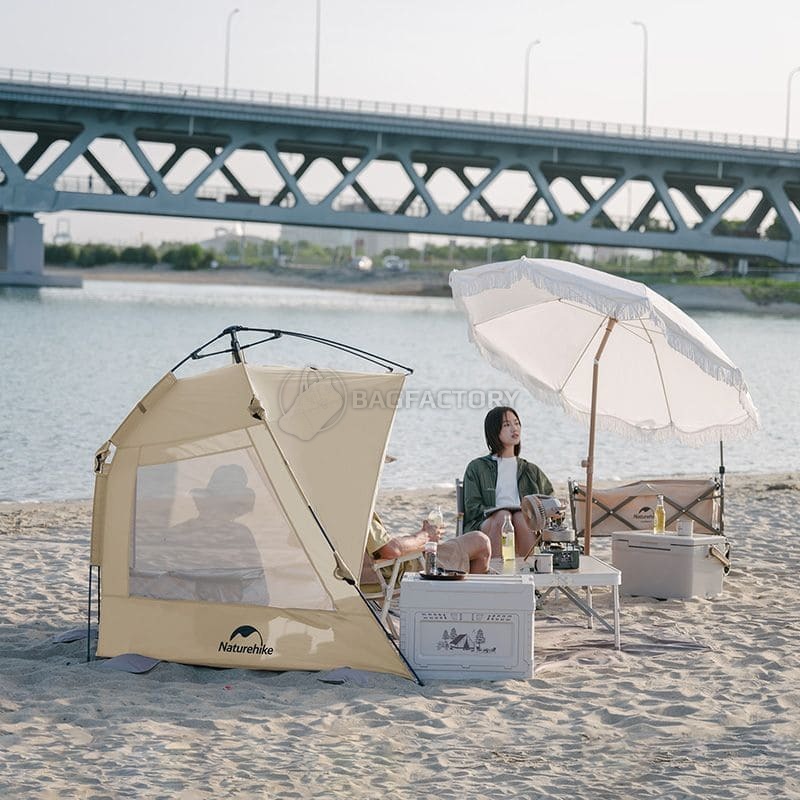 Палатка автоматическая открытая Naturehike CNK2300ZP023. Материал – ткань с пропиткой, обеспечивающая защиту от ультрафиолета на уровне СПФ 50+. Размер в разложенном виде – 245*136*136 см Размер в собранном виде – 90*14*14 см. Вес – 3,4 кг. Особенности конструкции – благодаря цельному кронштейну собрать палатку можно одним движением. Гарантия – 1 год.