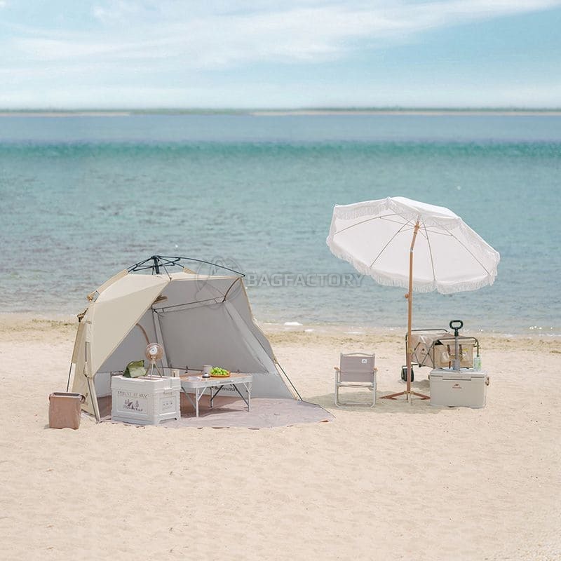 Особенности этой удивительной палатки включают защиту от солнца на уровне SPF 50+, что гарантирует надежную защиту от вредных солнечных лучей. Вы можете наслаждаться отдыхом на свежем воздухе, не беспокоясь о губительном влиянии ультрафиолетового излучения.