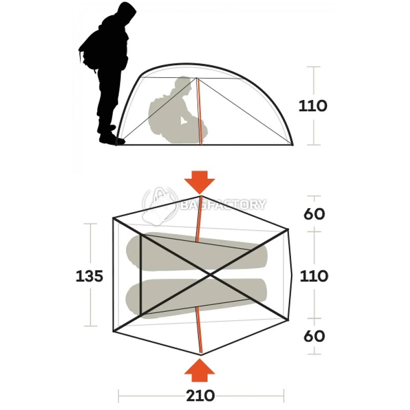 Внешний тент: 70D Polyester Ripstop, 85 г/м² с полиуретановым покрытием и огнестойкой обработкой, водостойкость 3000 мм