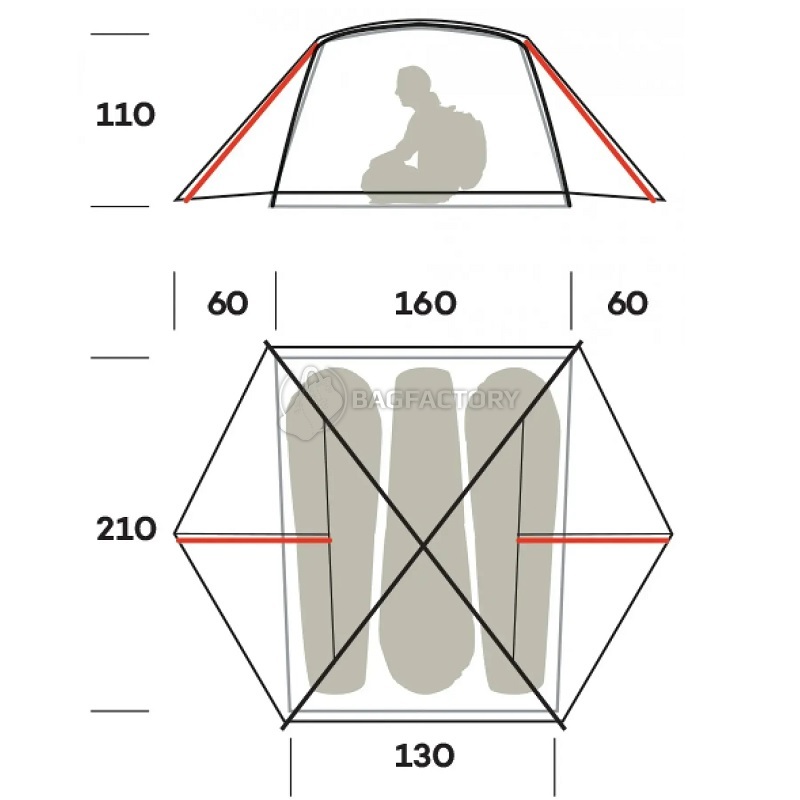 Внешний тент: 70D Polyester Ripstop, 85 г/м² с полиуретановым покрытием и огнестойкой обработкой, водостойкость 3000 мм