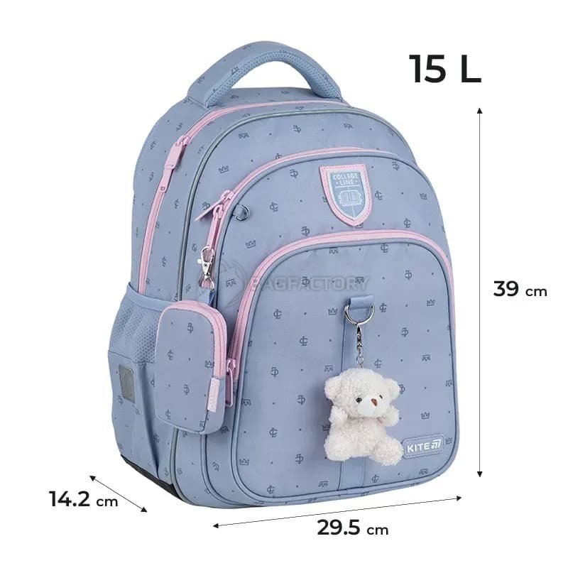 Школьный рюкзак Kite Education College Line Girl K25-763M-1. Материал: Полиэстер. Размер (рост): M (130 - 145 см). Объем: 15 л. Вес: 800. Размер: 39x29,5x14,2 см. Спинка: ортопедическая. Количество отделений: 2. Ручка: уплотненная ручка, ручка-петля. Дополнительные характеристики: Отделение для планшета, Внутренние разделители, Органайзер, Съемный кошелек на карабине, Карман для бутылки, Карман для телефона, Нагрудный ремень, Подвеска. Пол: Для девочек. Год коллекции: 2025. Лицензия/серия: KITE. Рекомендована для детей в возрасте 9-12 лет и ростом 130 - 145 см.