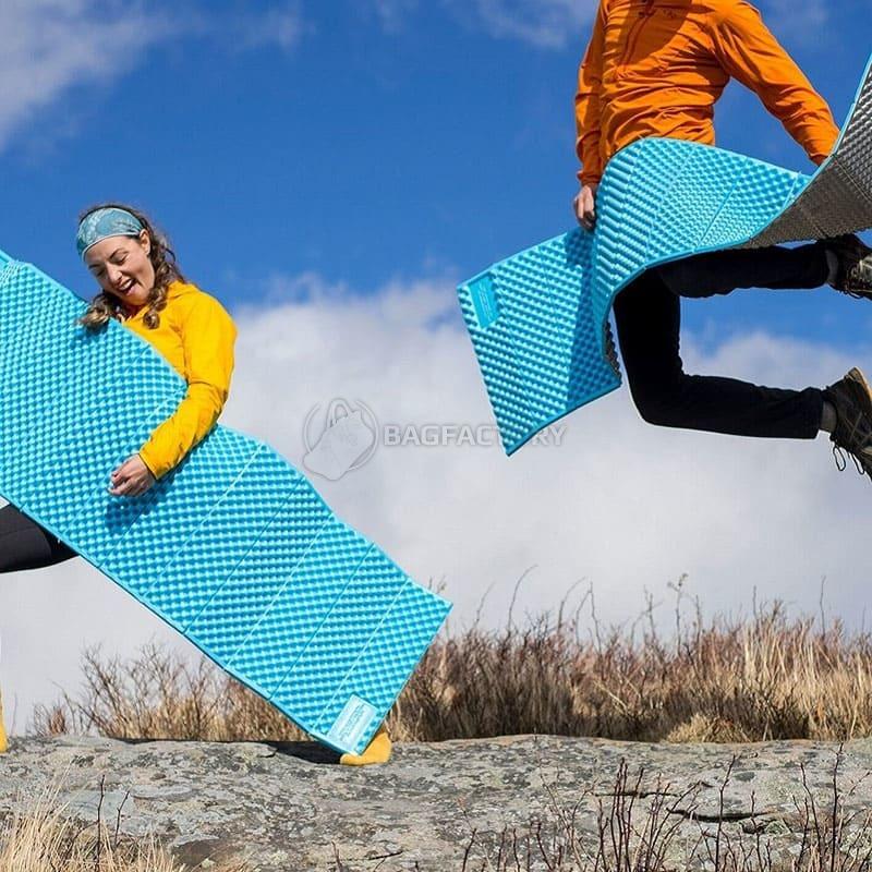 Коврик складывается гармошкой. Форма яичного лотка позволяет складываться коврику самому в себя, уменьшая транспортный объем, улучшая теплоизоляцию и повышая комфорт без увеличения веса.