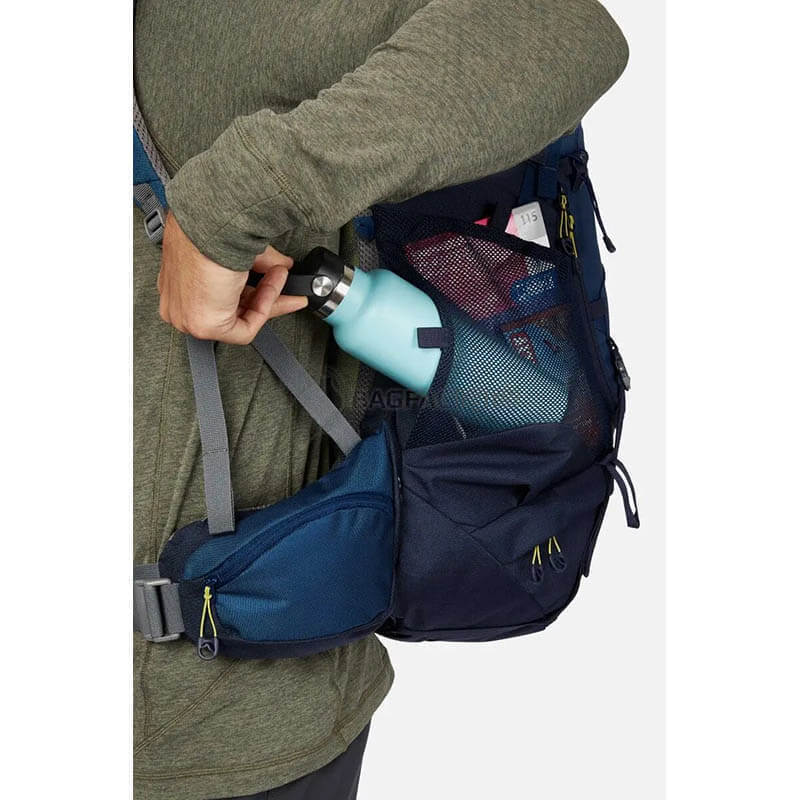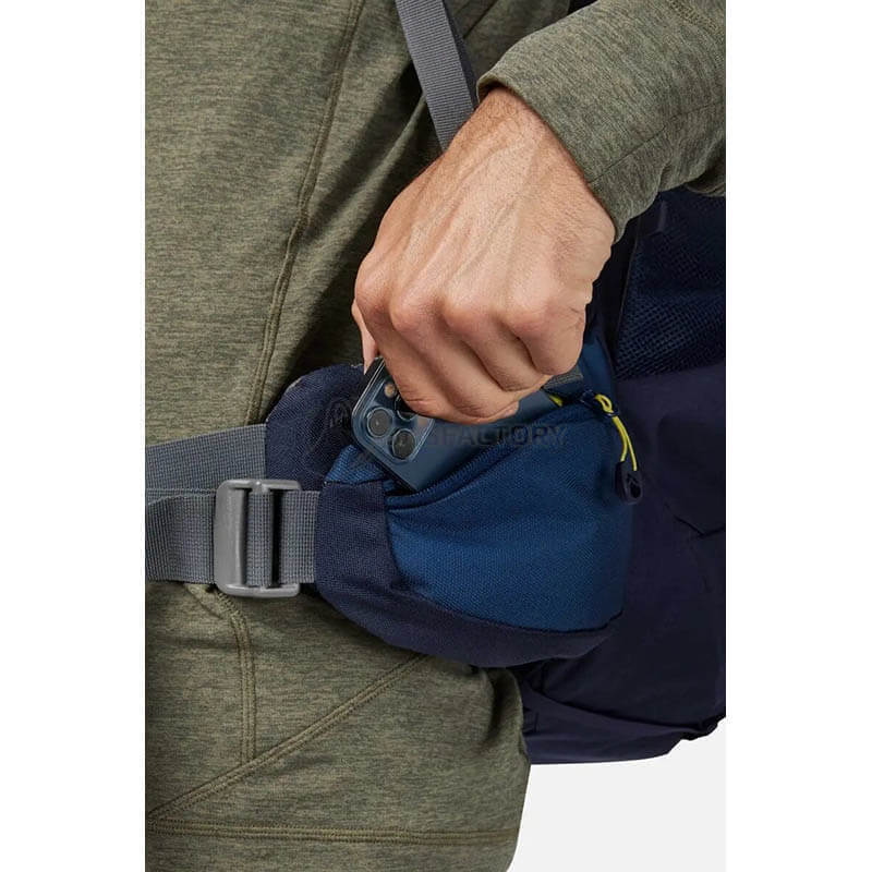 Рюкзак обеспечивает легкий доступ ко всему вашему снаряжению с помощью переднего и нижнего входа на молнии, а также внутренней разделительной панели, чтобы все было упорядочено. Мягкий набедренный ремень имеет карманы с легким доступом, которые идеально подходят для хранения закусок или компаса под рукой, а эластичная передняя банджи система является идеальным местом для хранения мокрого снаряжения.